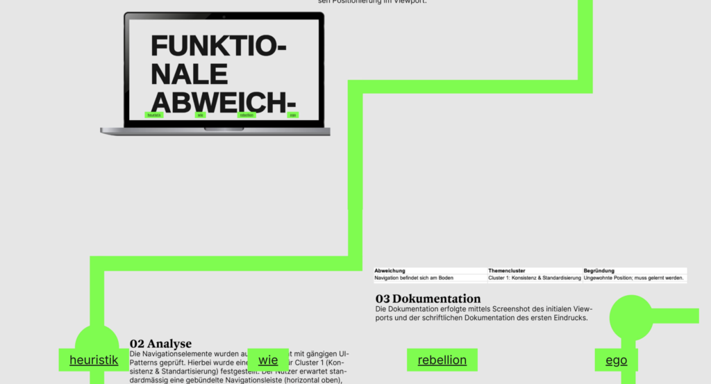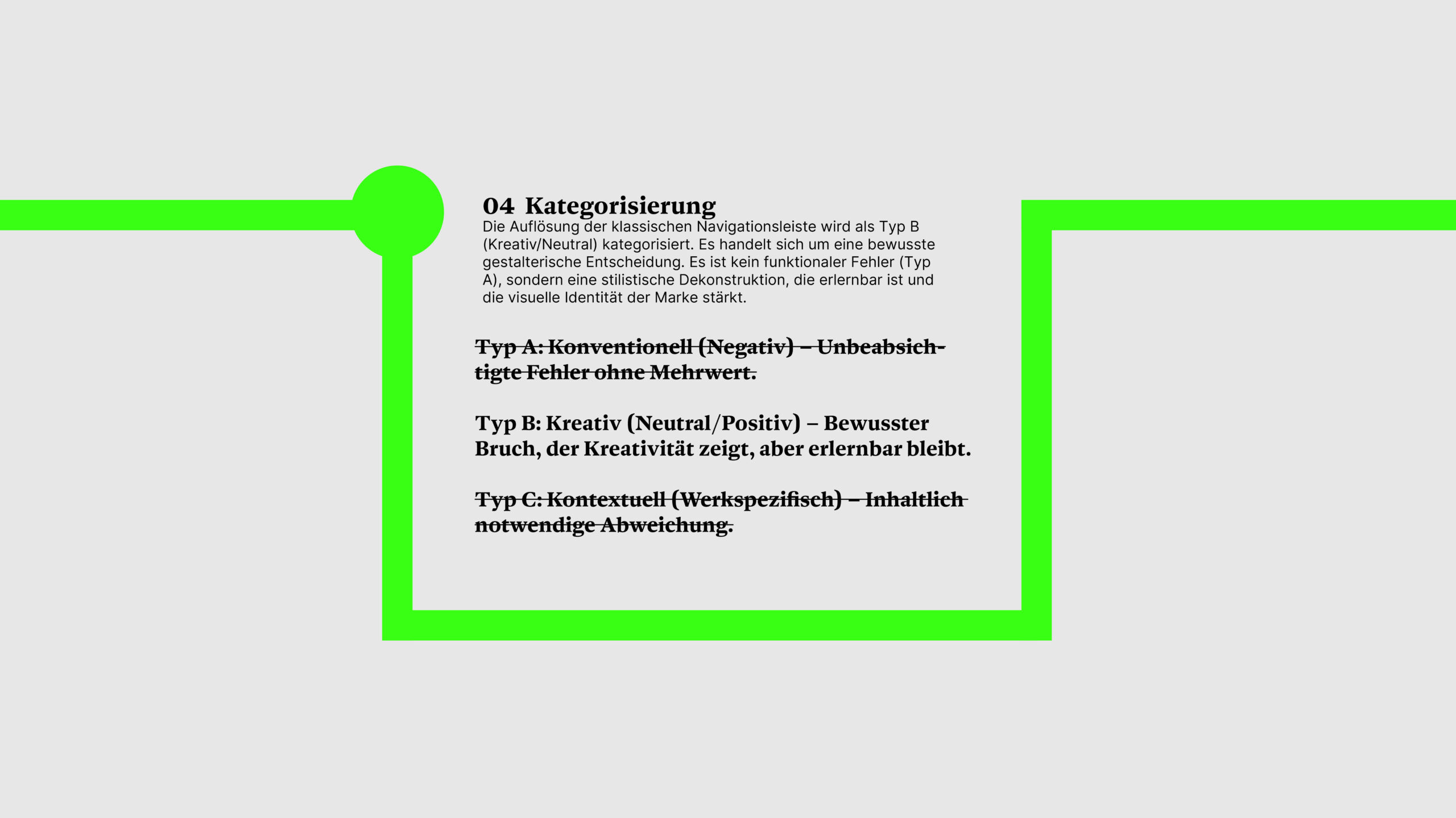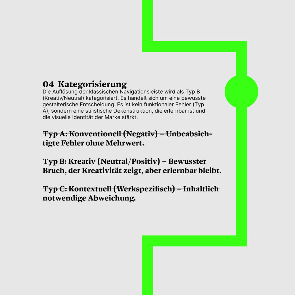 Begründung: Obgleich dieser Eingriff die Erwartungskonformität verletzt, erfüllt er eine wichtige strategische Funktion: Er durchbricht die Monotonie der vertikalen Bewegung und reaktiviert die Aufmerksamkeit des Nutzers.